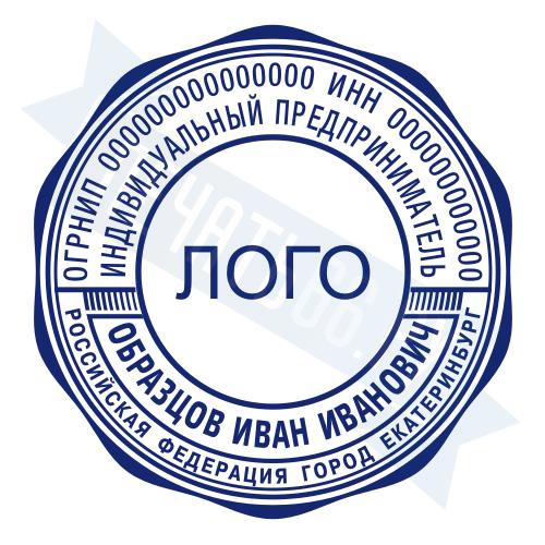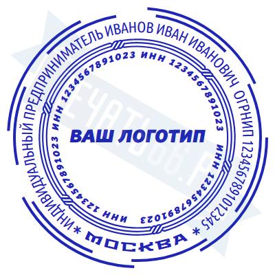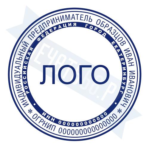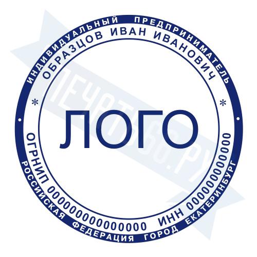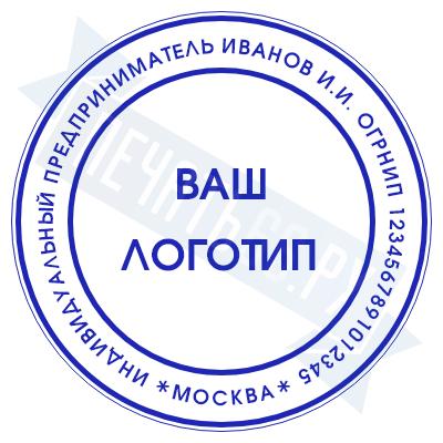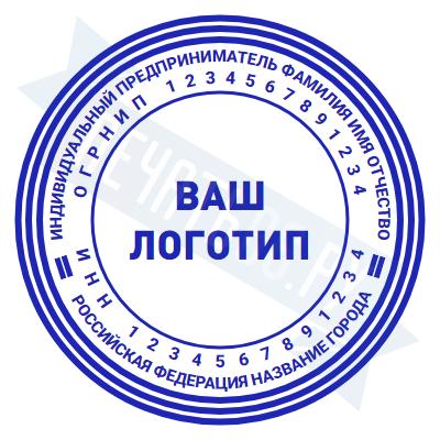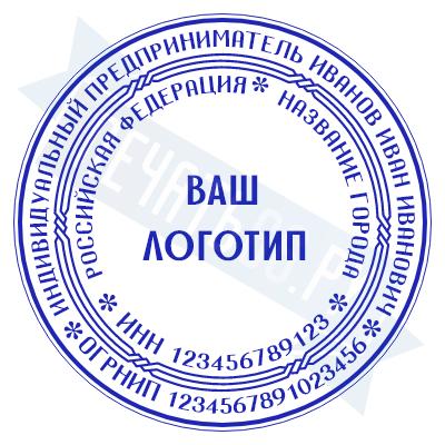 - Печать ИП с логотипом на ручной оснастке Классика R40 П/А, 40мм по цене 1248 рублей и еще 68 видов печатей с логотипом